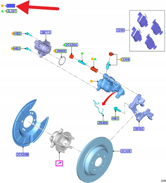 ZACISK HAMULCA LEWY TYŁ FORD FOCUS KUGA 20- OE 2571524 _ KTJX61-2D347-BFC