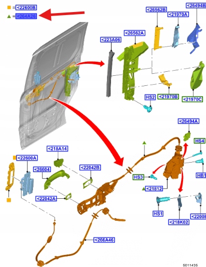 ZACZEP PRAWY BOCZNYCH DRZWI ŁADUNK. TRANSIT MK7 2229955 _ DT11-V264A26-DG