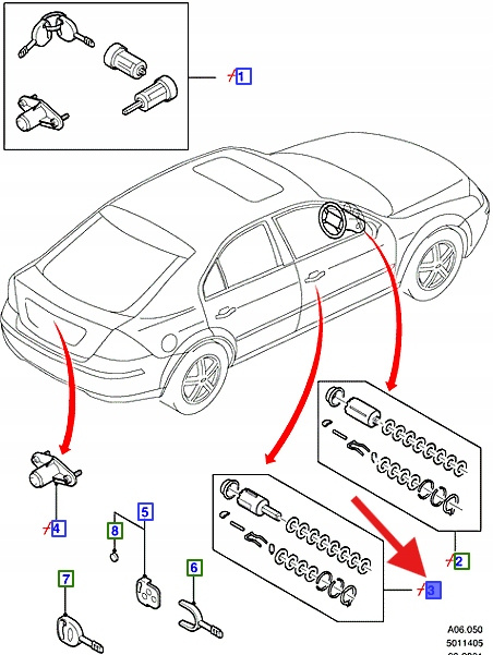 ZAMEK DRZWI PRAWY PRZÓD FORD MONDEO 2000- 2007 OE 4963726 _ 1S7A-A220K51-AC