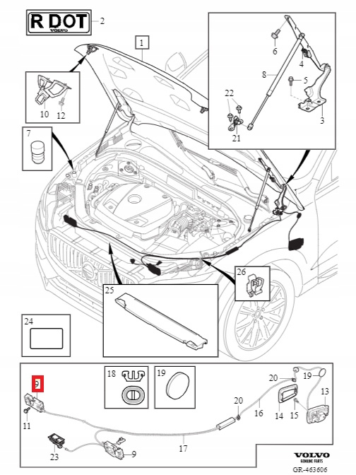 ZAMEK MASKI LEWY VOLVO XC60 2023- OE 32405275
