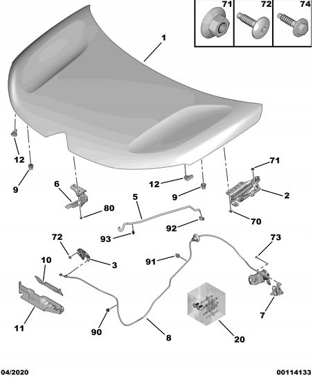 ZAMEK MASKI POKRYWY SILNIKA CITROEN C5 AIRCROSS OE 9830070480