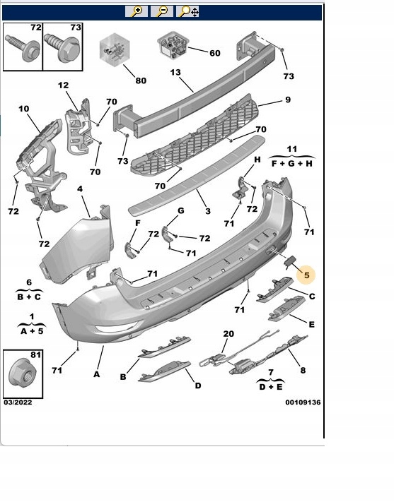 zaślepka zaczepu holowniczego zderzaka tył 98146387XT PE 5008