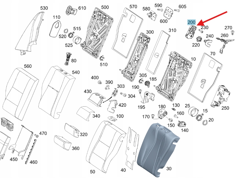 ZATRZASK OPARCIA KANAPY LEWY TYŁ MERCEDES OE A2059200576