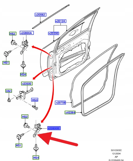 Zawias dolny drzwi przednich lewych