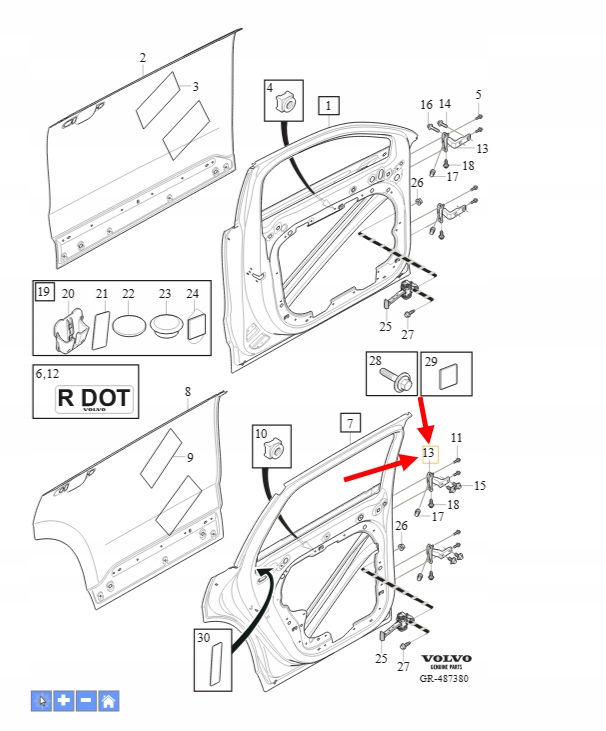 ZAWIAS DOLNY DRZWI LEWY PRZÓD VOLVO XC90 2016- XC60 OEM/OE 31424612