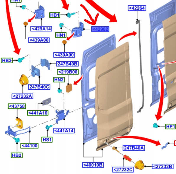 ZAWIAS DRZWI PRAWY TYŁ FORD TRANSIT MK8 2017- OE 2635096 _ HK31-V42982-AE