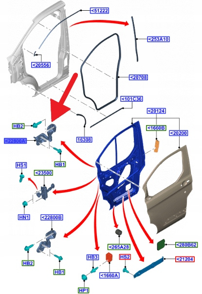ZAWIAS DRZWI PRZÓD LEWY GÓRNY FORD CUSTOM 2012- 2011005 _ BK21-V22801-BH