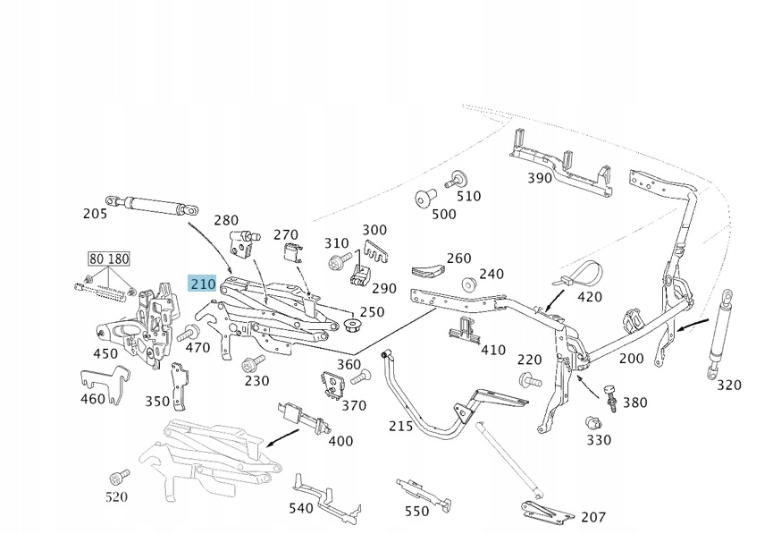 ZAWIAS LEWY DACHU SKŁADANEGO 230 750 01 51 MERCEDES SL