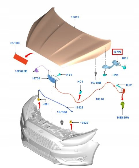 ZAWIAS MASKI PRAWA STRONA FORD FOCUS Mk3/ KUGA Mk2_1750016_BM51-A16800-AD