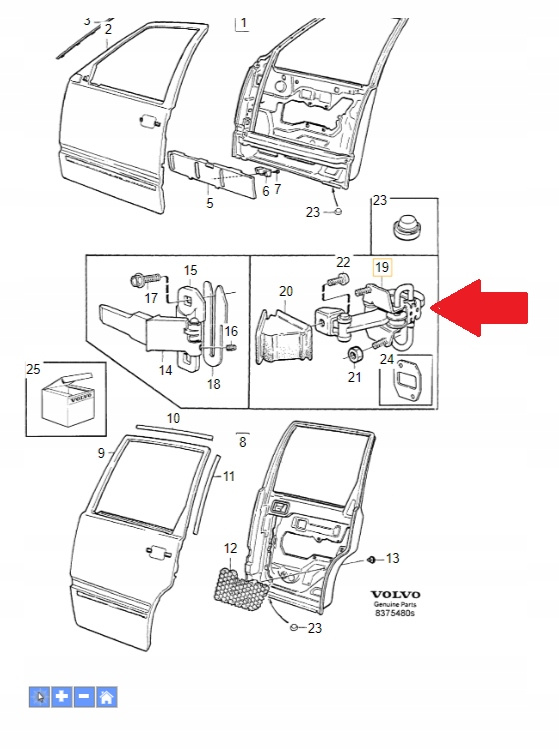 - ZAWIAS OGRANICZNIK DRZWI LEWY PRZÓD VOLVO S70 V70 1997- OE 9203196