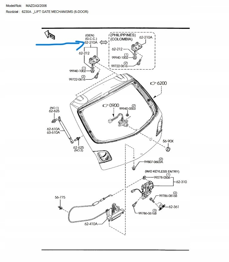 Zawias pokrywa tylna - Mazda 2 DE Mazda 3 BK 6 GH_D35062210B