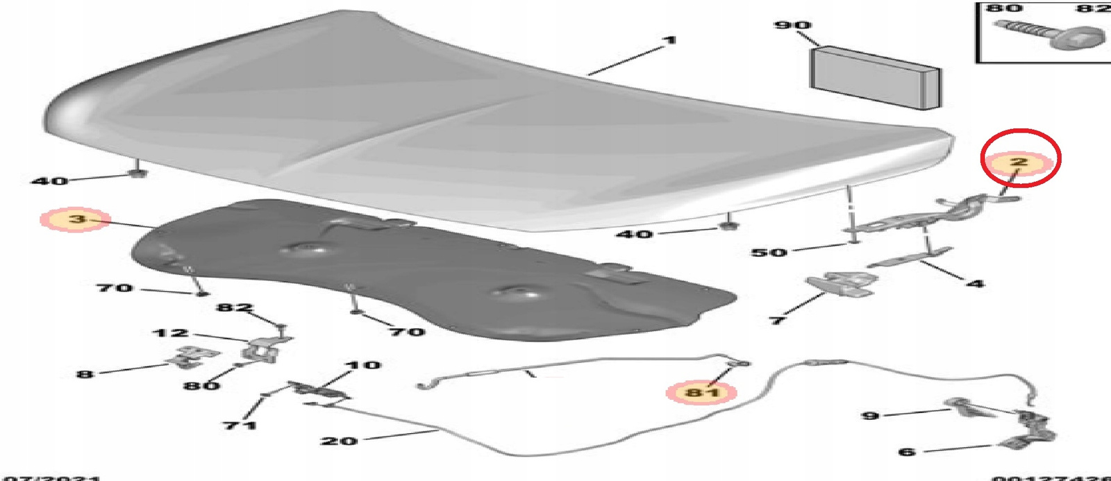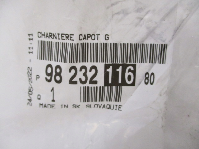 Zawias pokrywy silnika strona lewa Citroen, Peugeot, Opel 9823211680