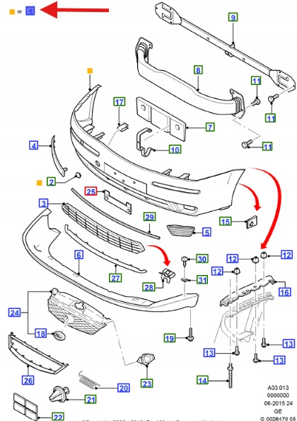 ZDERZAK PRZEDNI FORD MONDEO MK3 2003- 1344320 _ 3S71-17757-AJ
