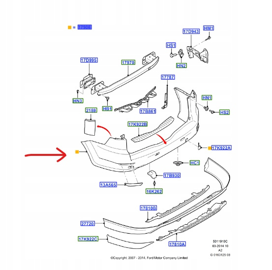 ZDERZAK TYLNY FORD MONDEO Mk4 KOMBI 2010-2014 1704621 _ BS71-N17906-BBXWAA