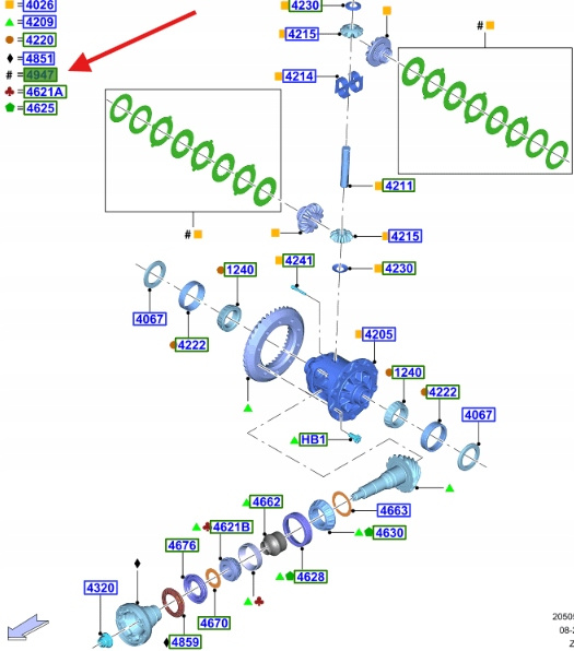 ZESTAW DYSTANSÓW DYFERENCJAŁU FORD MUSTANG 15- 23- 5299011 _ FR3W-4947-AA