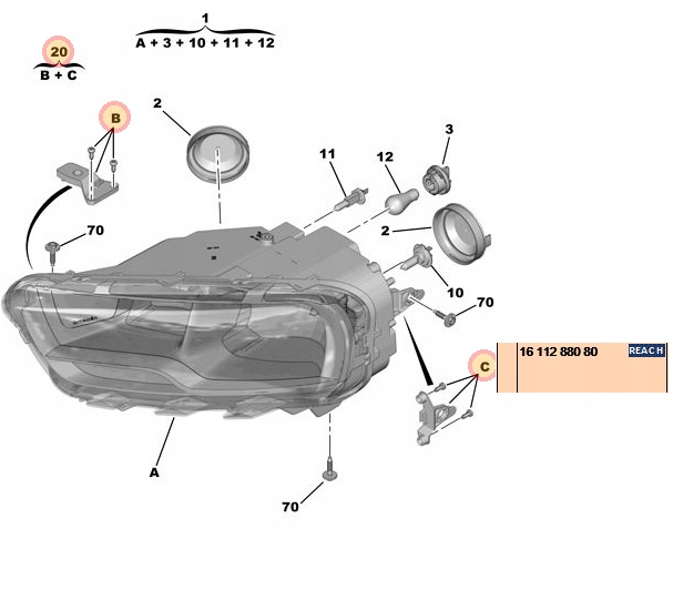 Zestaw naprawczy reflektora Citroen C4 Cactus OE 1611288080
