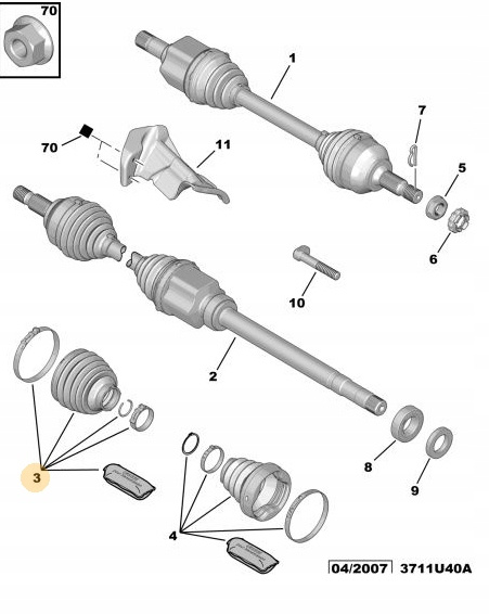 Zestaw osłony półosi Citroen C5 X7 2.2 HDI OE 3293E7