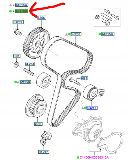 ZESTAW ROZRZĄDU POMPA WODY 1.4 TDCi FIESTA FUSION 2008680 _ 2S6Q-8B596-AB