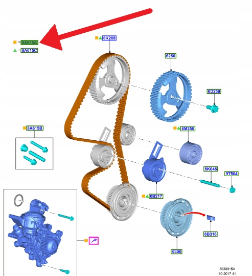 ZESTAW ROZRZĄDU Z POMPA WODY 1.5 TDCI PUMA TRANSIT 2189258 _JX6Q-8B596-AA