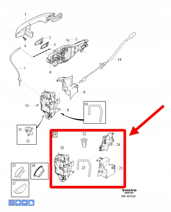 ZESTAW ZAMKA DRZWI LEWY TYŁ VOLVO XC90 2016- OEM/OE 32310872
