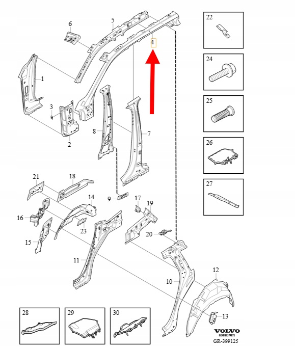 ZEWNĘTRZNE WZMOCNIENIE SŁUPKA A LEWA GÓRA VOLVO XC90 2016- OEM/OE 31416329
