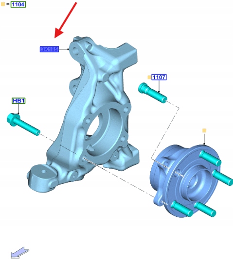 Zwrotnica lewego przedniego koła - ze zmienną charakterystyką zawieszenia